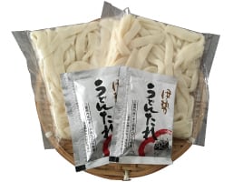 伊勢うどんを茹でるときは、たっぷりのお湯で茹でてください。お湯が少ないとうどんを入れたときに湯温が下がり、茹で時間が大幅に変わります。一度に2食以上茹でる場合も同様です。(茹で時間はお好みに応じて調節してください)